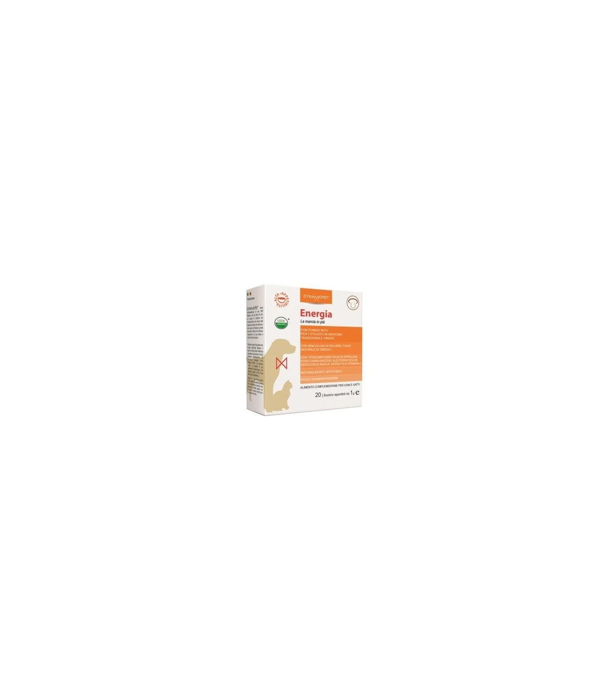 Energia è un alimento complementare sviluppato per animali sportivi, sostiene le fisiologiche funzioni dell’organismo durante i periodi di intenso lavoro e stress psico-fisico. La presenza di funghi noti per l’utilizzo in Medicina Tradizionale Cinese, di Eleuterococco, specie botanica dalla tradizionale azione tonica-adattogena, e di alga spirulina, ricca in amminoacidi essenziali, per una fisiologica azione di sostegno, rende il prodotto un prezioso alleato per l’energia dell’organismo. Il contenuto in Vitamina C ed in rosa canina, fonte naturale della stessa vitamina, contribuisce ad utilizzare al meglio i costituenti attivi contenuti nei funghi. Naturalmente appetibile. Facile somministrazione. ALIMENTO COMPLEMENTARE PER CANI E GATTI.