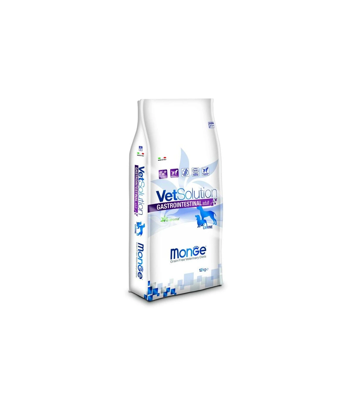 PROTEINE: MONGE VETSOLUTION CANINE GASTROINTESTINAL è formulato con proteine idrolizzate di salmone, limitando il carico di lavoro intestinale e assicurando un’alta digeribilità. ACIDI GRASSI ESSENZIALI: Per conservare l’energia indispensabile per la rigenerazione dell’epitelio, MONGE VETSOLUTION CANINE GASTROINTESTINAL è ricco di energia (4200 kcal/kg), portata dagli acidi grassi ad alta digeribilità. L’infiammazione intestinale è tenuta sotto controllo da un rapporto target omega 6 / omega 3 di massimo 5. MINERALI: Paragonato alle diete di mantenimento, il livello di elettroliti nel MONGE VETSOLUTION CANINE GASTROINTESTINAL è aumentato per compensare le eccessive perdite di acqua e migliorarne il contenuto intracellulare.