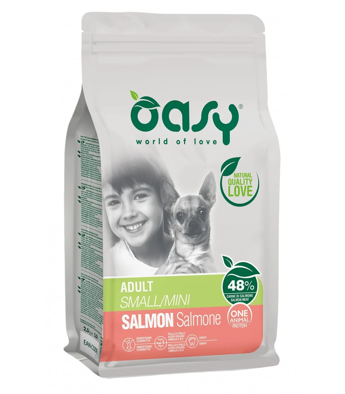 Il passaggio da un altro alimento ad Oasy deve essere effettuato gradualmente in 7 giorni. La razione giornaliera indicata può variare in base al livello di attività fisica dell’animale. Lascia sempre a disposizione del tuo cane acqua fresca e pulita. Conservare in luogo fresco e asciutto.