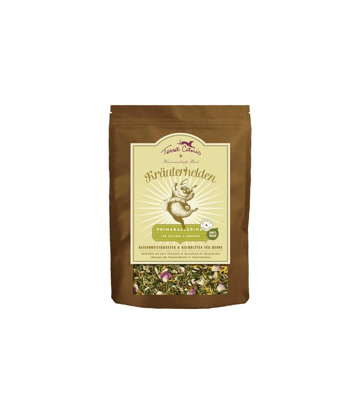 Dolorose malattie articolari non sono una rarità nei nostri amici a quattro zampe. Deformità genetiche, accoppiamenti sbagliati, cattiva alimentazione, sovrappeso o una sollecitazione costante eccessiva delle articolazioni possono causare diversi disturbi dell’apparato motorio. Un classico caso delle cause sopra menzionate è l’artrosi, degenerativa e incurabile. Tra i sintomi, debolezza, rigidità e dolorosità permanente. Le erbe officinali e i fiori di Bach di Terra canis herbal articolazioni 100 g, uno degli HERBAL HEROES di Terra Canis, sono noti per l’azione positiva sul metabolismo articolare e sulla produzione di liquido sinoviale. In naturopatia, l’artiglio del diavolo viene impiegato proprio contro i disturbi articolari. I fiori di Bach Centaury, Gentian e Wild Rose forniscono ulteriore supporto.